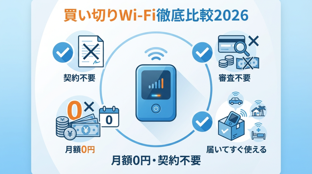 【2026年最新】月額0円!買い切りWi-Fi徹底比較4選|契約なし・審査不要で届いたらすぐ使えるチャージ式ポケットWiFiおすすめランキング