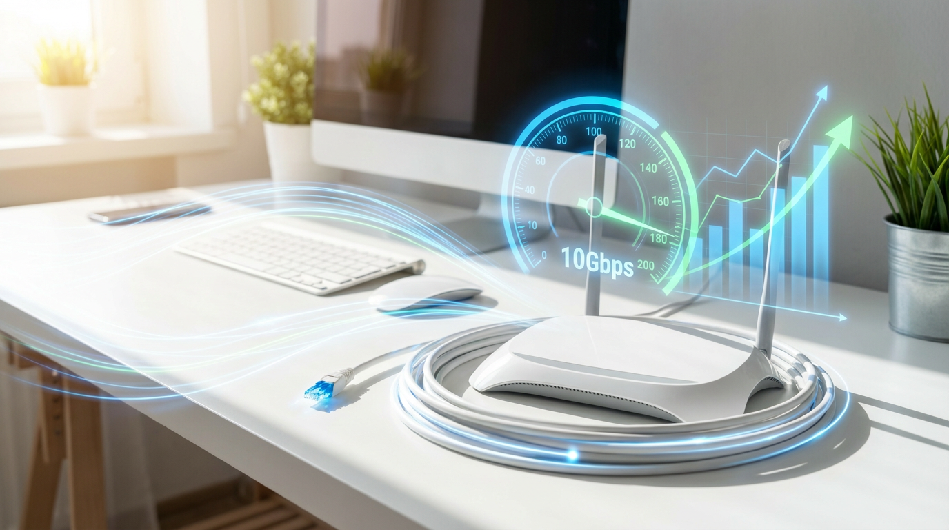 10ギガ回線の性能を活かすには、10ギガ対応のWi-Fiルーターが必要です。一般的な1ギガ対応ルーターでは、10ギガの速度は出ません。