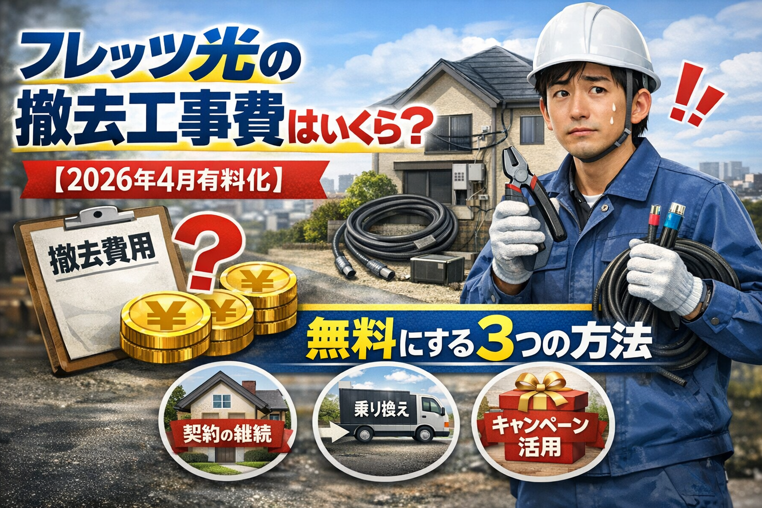 フレッツ光の撤去工事費はいくら?【2026年4月有料化】無料にする3つの方法