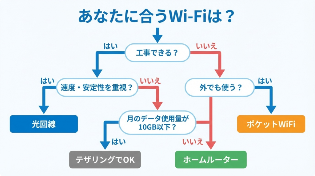 【タイプ診断】あなたに合うのはどれ?一人暮らしWi-Fi選び方フローチャート