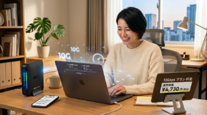 光回線の工事ができない物件や、引っ越しが多い人に重宝されている選択肢です。ただし無線回線のため、混雑時間帯(夜20〜23時頃)は速度が落ちやすい点は理解しておきましょう。月額料金はおおむね4,000円〜5,500円の範囲です。