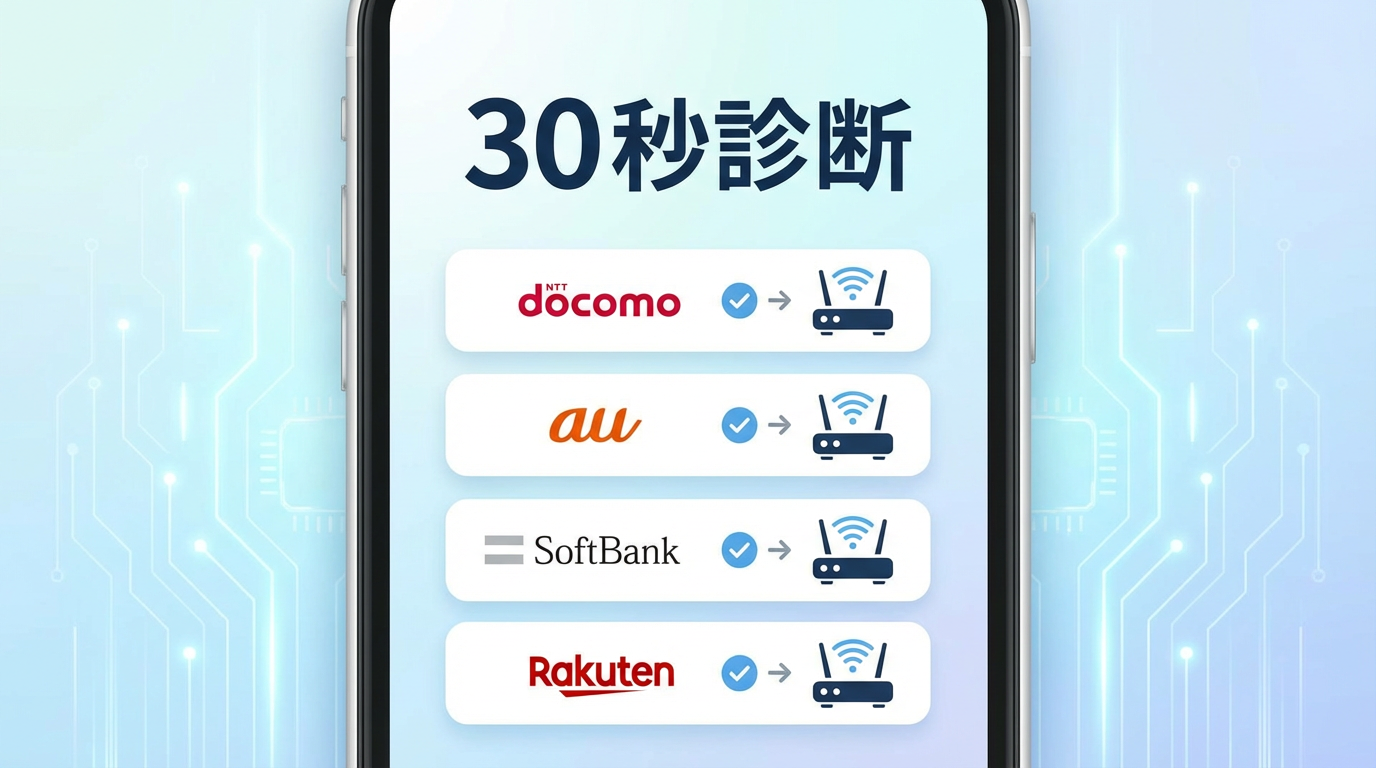 【30秒診断】スマホキャリア別Wi-Fi選び|あなたに最適な光回線・工事不要Wi-Fiが分かる