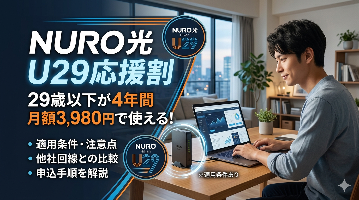 通信業界10年以上の実務経験をもとに、筆者がNURO光公式サイトの最新情報(2026年4月時点)を確認し、U29応援割の適用条件・月額料金・他社との差額・申込手順までをまとめました。「自分に合っているか」を判断するための数字と基準を、すべてこの1記事に集約しています。