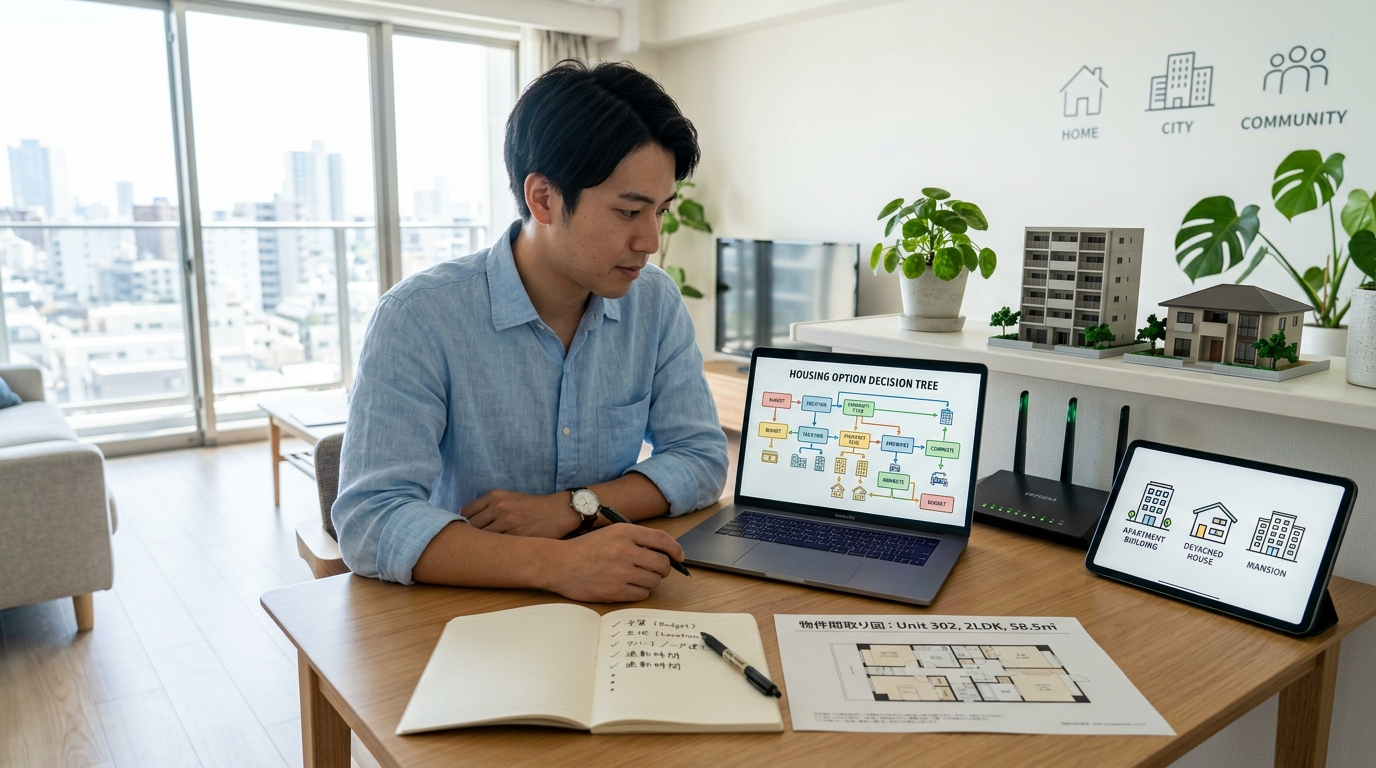 住居タイプを選ぶだけで最適解に辿り着ける構成にしました。自分の新居に該当するセクションだけ読んでもOKです。