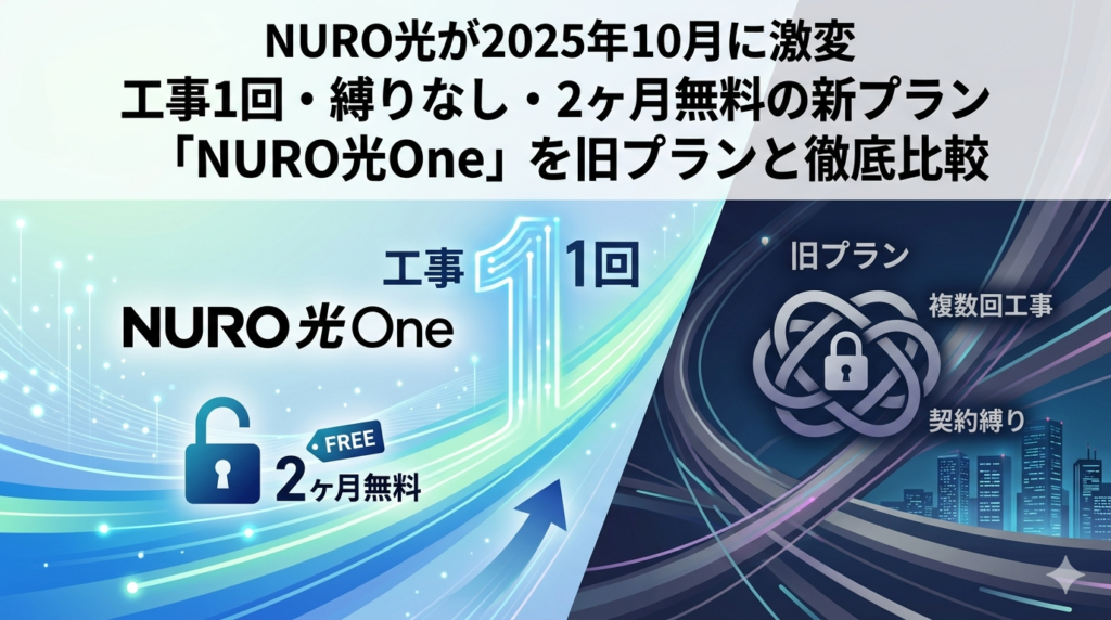 NURO光が2025年10月に激変|工事1回・縛りなし・2ヶ月無料の新プラン「NURO光One」を旧プランと徹底比較