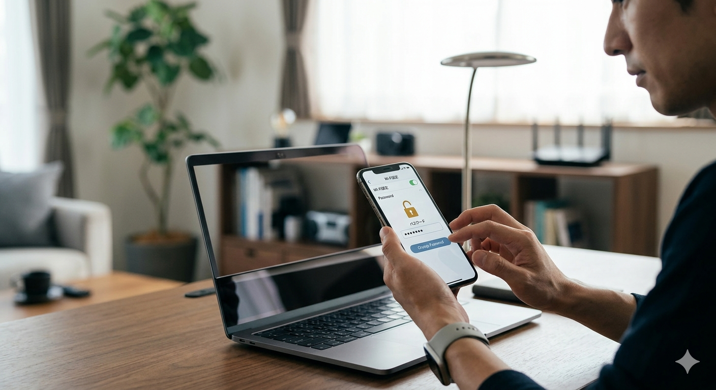 Wi-Fiのパスワード(暗号化キー・セキュリティキー)は、初回接続時に一度入力すれば端末が記憶してくれるため、普段は意識しません。そのぶん、機種変更やルーター再起動のタイミングで「あれ、パスワードなんだっけ?」となりがちです。