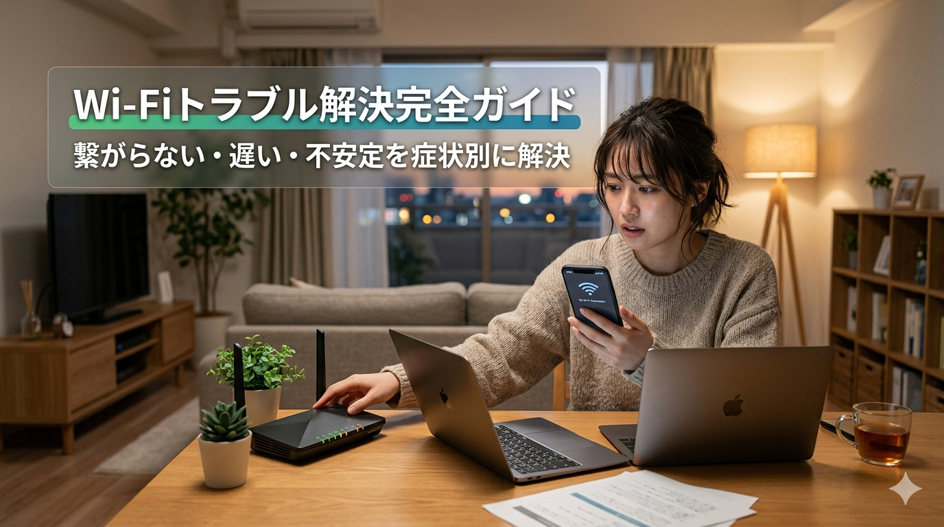 Wi-Fiトラブルは、症状ごとに原因が違います。まず「1台だけなのか」「家全体なのか」「夜だけか」「用途限定か」を切り分けると、対処の精度が大きく上がります。