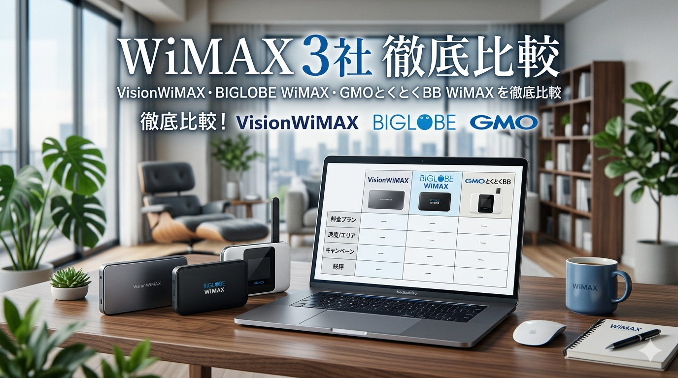 「WiMAXを契約したいけど、プロバイダが多すぎてどこを選べばいいかわからない」――この悩みを抱えている方は少なくありません。通信業界10年以上の実務経験をもとに、VisionWiMAX・BIGLOBE WiMAX・GMOとくとくBB WiMAXの3社を料金・キャッシュバック・契約の自由度の3軸で比較しました。