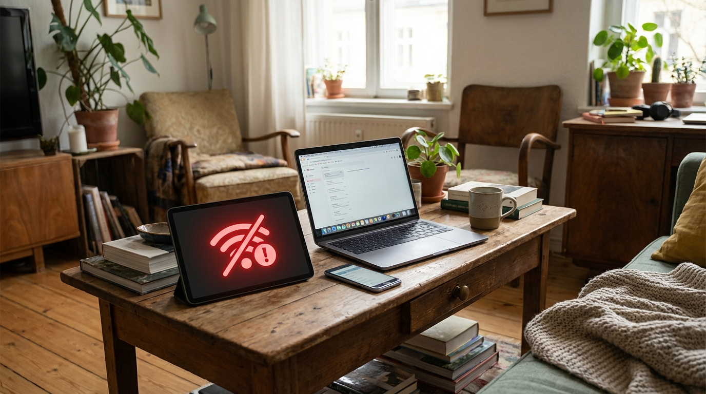 2.4GHz帯は電子レンジやBluetooth機器と干渉しやすいため、5GHz帯(またはWi-Fi 6の6GHz帯)を使うと安定します。ルーターの設定画面でSSIDを分けて、5GHz専用に接続しましょう。